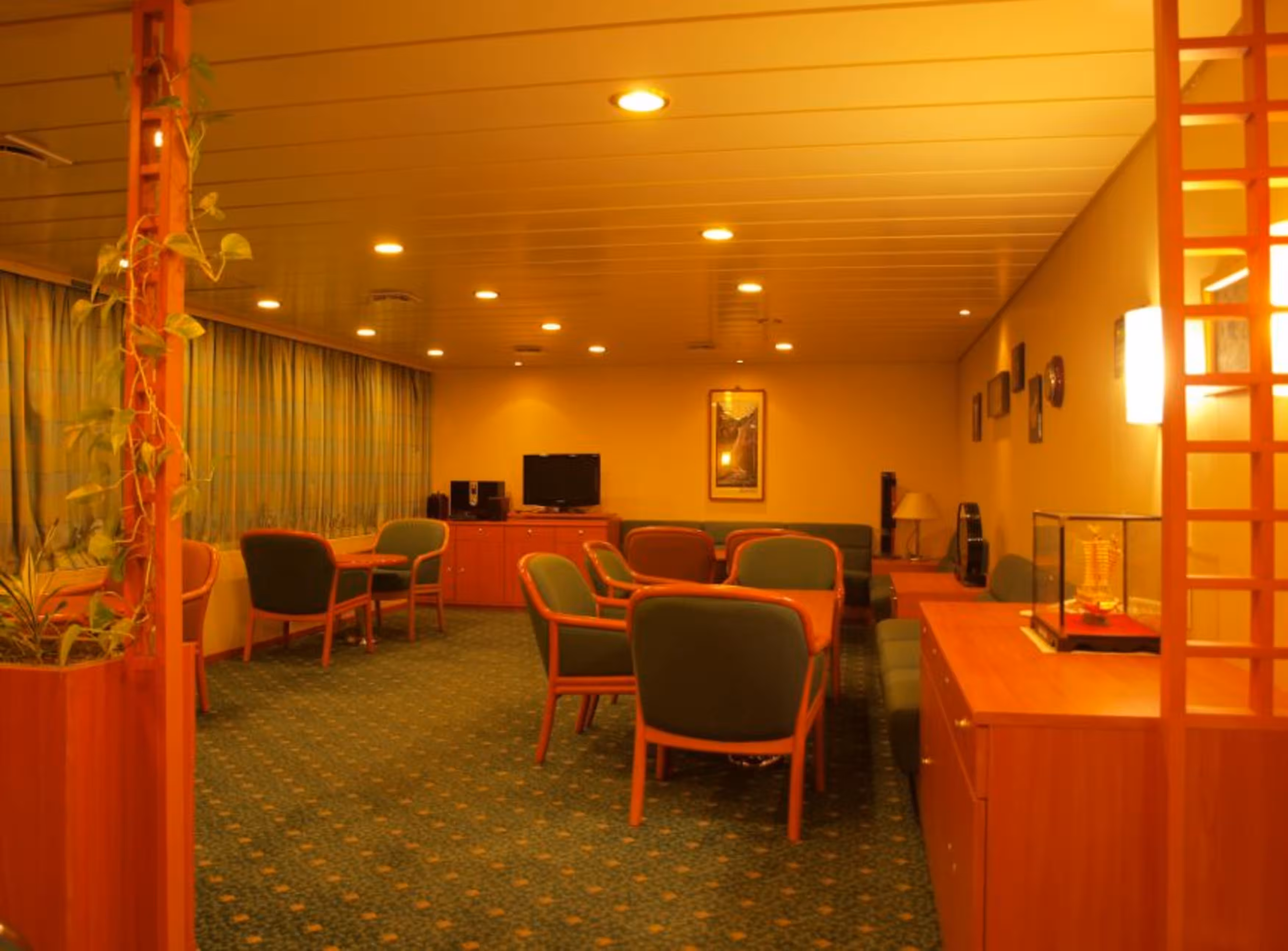 Relaxation and sociable leisure-time on Cargo Ship Travel The wonderful peace and seclusion of freighter travel can be experienced either on the sun deck, in the sauna, in your own comfortable cabin, or in a sociable get-together in the officers' mess room with the officers and the other passengers. Passengers are welcome to receive complimentary detailed tours of the facilities and lifeboats. Regular BBQ-Parties on a freighter travelView to the officer´s mess roomIf, while on Freighter Travel, you want to participate in a barbecue, a visit to the lounge, or a karaoke-competition, this is a wonderful opportunity to get closer to the crew itself. The engine room A simple request to the Captain or the Chief Engineer is usually enough to earn you a visit to the engine room. For example on the MSC Ilona, the engineer was very pleasent and shared with us all we wanted to know. For instance, we learned about the engine, the turbine, the fuel consumption, the emergency generator, the coolant system, the maintenance opperations, and all about the environmentally critical issue of the right fuel. The bridge On the bridge you may receive all the information about steering and the exact route taken by the cargo ship from the Captain or the current responsible officer. Even a look in the detailed logbook or on the nautical chart gives revealing answers. Example MSC Ilona - some facts of Freighter Travel The MSC Ilona is running under a Liberian flag. It was launched in 2001, has a capacity of 6,750 TEU container and a total deadweight of 106,459 t. Her average speed is about 20 knots. The freighter has a length over all of 300 m (ca. 984 ft), a registered breadth of 40 m (ca. 131 ft) and a draught of 15 m (ca. 49 ft). On cargo ship travel unloading the cargo takes precedence. It is the perfect time for a passenger to leave the ship and explore the next city. On many routes the cities are not too far away from the port and you may have the whole day available (sometimes even longer). The unique panorama of Freighter Travel It is not really a secret of freighter travel that the panoramic view is pretty special. Whether the sun is shining brightly, the sun is rising or setting, or you are crossing a thick fog, every moment is unique. View on the deck during a Cargo Ship Travel A walk around the ship reveals new horizons on a cargo ship journey. Cabin examples Cabin 1: 1 Double-Cabin (Owner - ca. 30 m² incl. Shower / WC), Deck F, Starboard middle, 1 bedroom and 1 living room, 1 Double-Bed (2.05 x 1.80 m), Refrigerator, TV/DVD/Hifi, 2 Sofas, Table, Desk, Chairs, Carpet, View to the front. Cabin 2: 1 Double-Cabin (Purser- ca. 30 m² incl. Shower / WC), Deck F, Port side middle, 1 bedroom and 1 living room, 1 Double-Bed (2.05 x 1.80 m), Refrigerator, TV/DVD/Hifi, 2 Sofas, Table, Desk, Chairs, Carpet, View to the front.